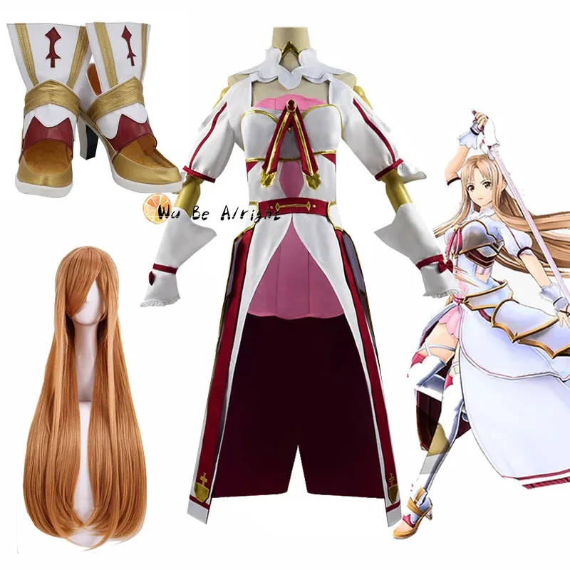 Искусство меча онлайн, алицинизация, Lycoris Yuuki Asuna, Аниме Косплей Костюм, женский костюм для косплея Юки, искусственная обувь, парики