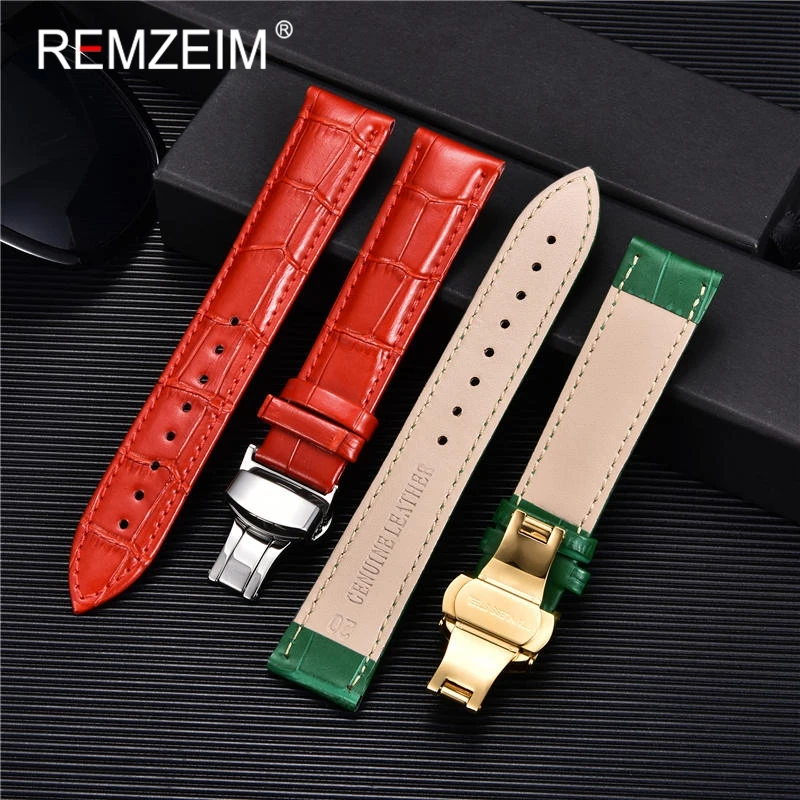 Ремешок для часов REMZEIM из коровьей кожи, Аксессуары для часов, браслет из воловьей кожи, синий зеленый красный коричневый черный, 18 мм 20 мм 22 мм 24 мм