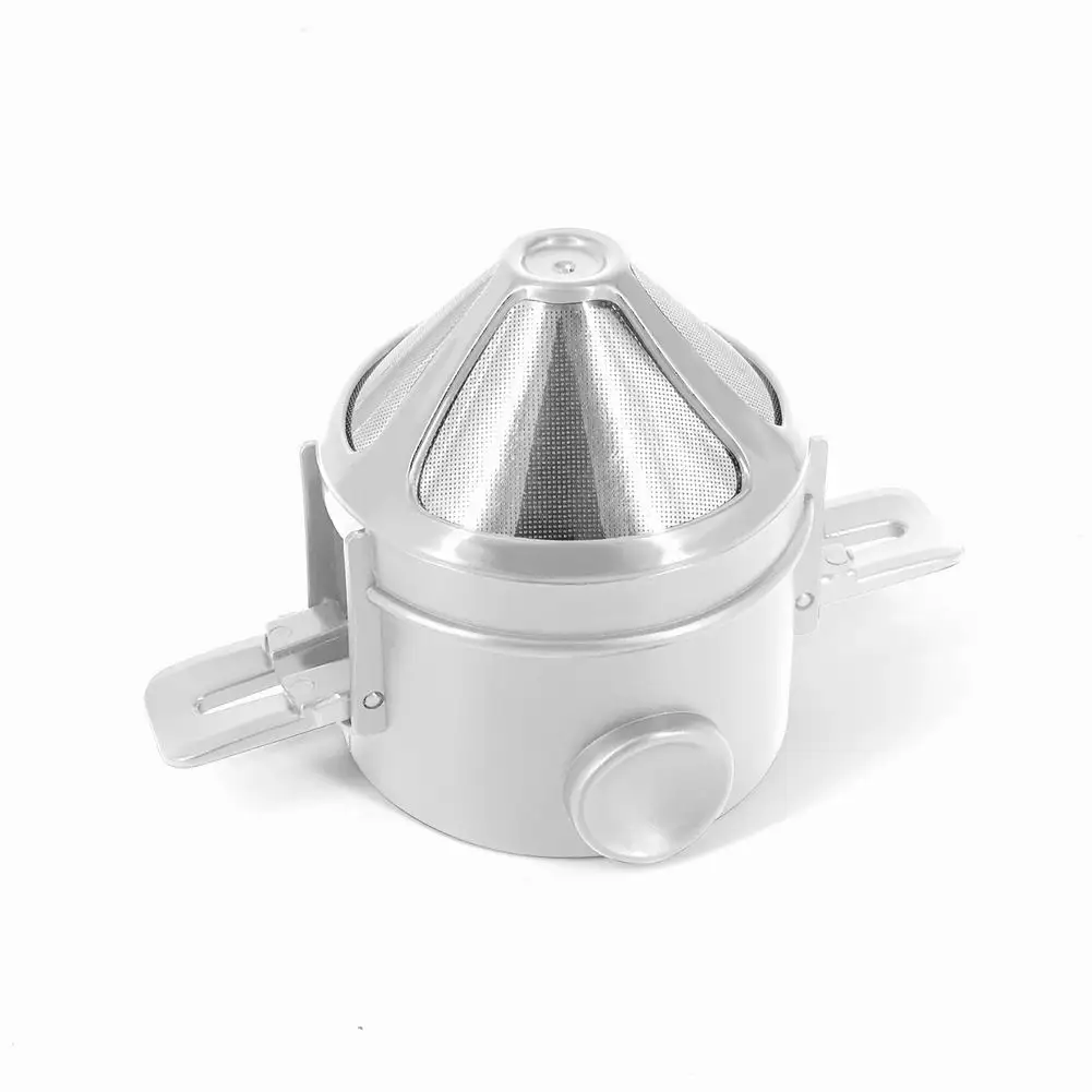 * 2. Профессиональный Двухслойный дизайн. Внутренний слой фильтровальной бумаги сплетен сверхтонкой металлической проволокой с высокой плотностью, которая изолирована от кофейного порошка. Внешний слой утолщенного листа из нержавеющей стали перфорирован лазером, обеспечивая дополнительный слой защиты.