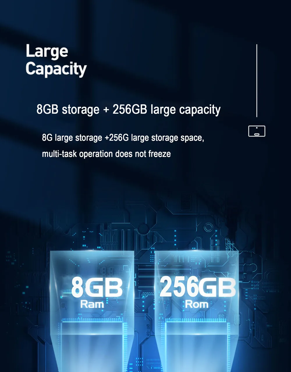 8G большое хранилище + 256G большое пространство для хранения, многозадачное управление не замораживает