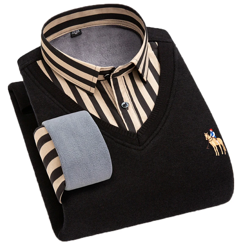 AOLIWEN мужской черный вязаный толстый пуловер свитер рубашки для мужчин плюс бархатная однотонная осенняя и зимняя теплая рубашка с длинным рукавом