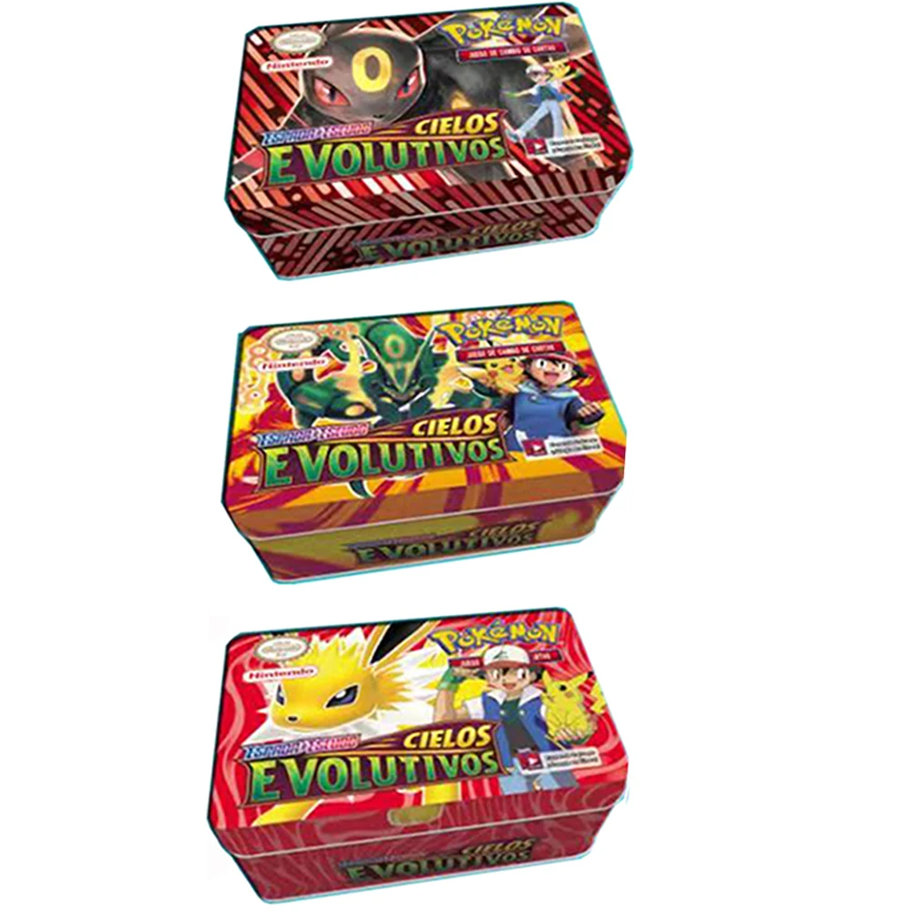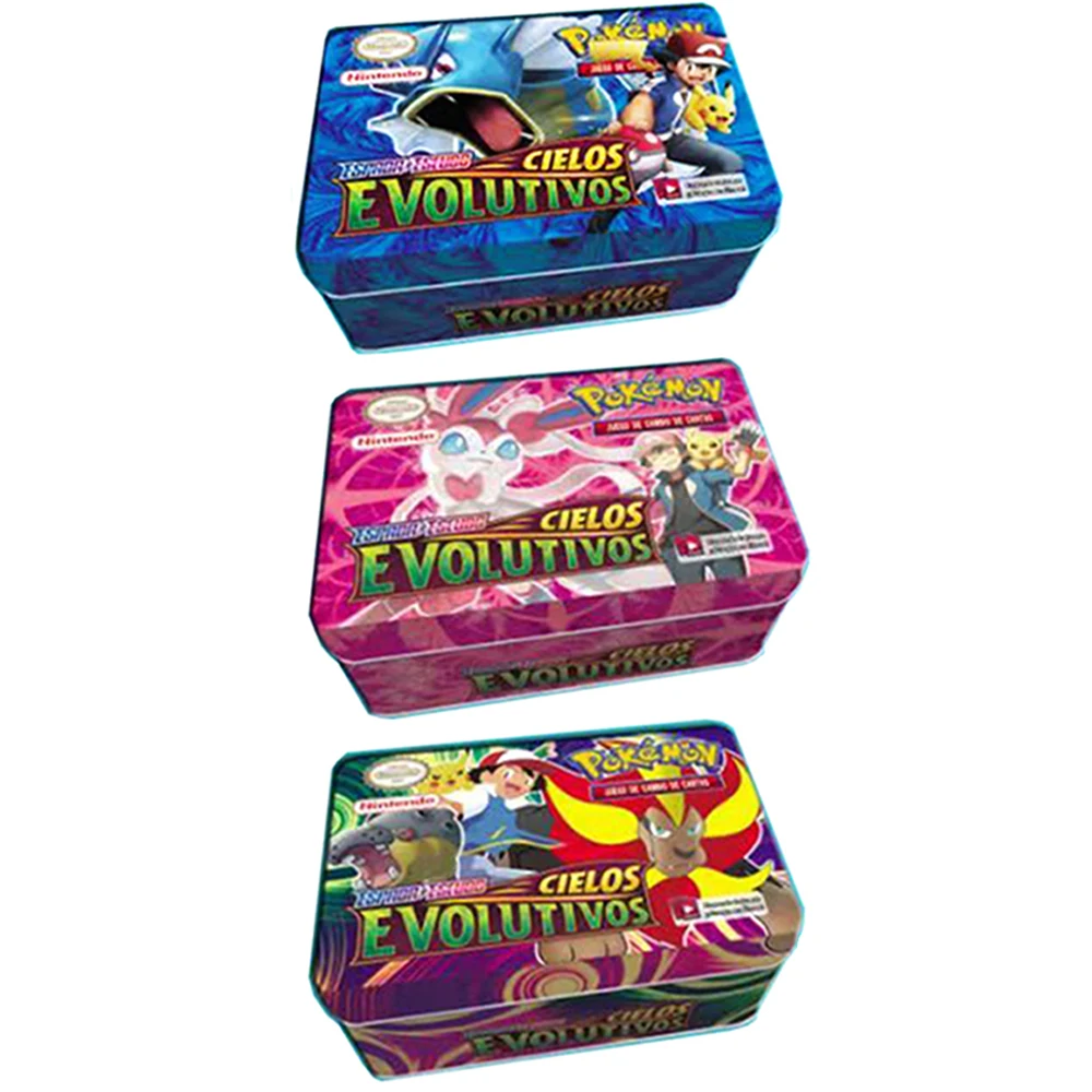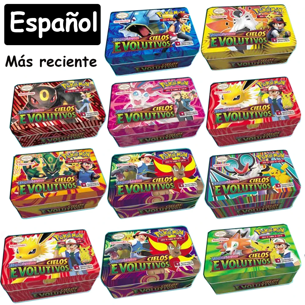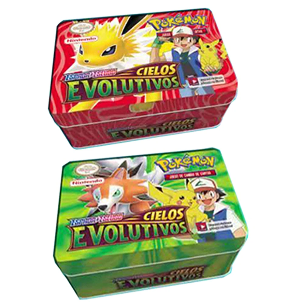 42 шт.компл. карты Pokemon в испанской железной коробке, развивающиеся карты Sky Espaol, игры для детей