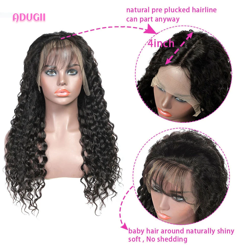 Парик фронтальный 13X4 с глубокой волной, бразильский парик с застежкой 4x4, парик с прозрачной кружевной передней частью, парики из натуральных вьющихся натуральных человеческих волос для черных женщин