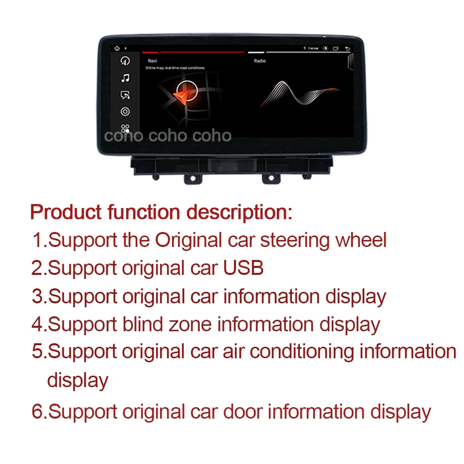 > OSD языкРусский, английский, испанский, итальянский, французский, немецкий, китайский, эстонский, польский, филиппинский, финский, корейский, голландский, хорватский, латышский, литовский, румынский, норвежский, португальский, японский, шведский, тайский, турецкий, украинский, венгерский.> 24H * 7 поддержка обслуживанияВ COHO Наша цель-продолжать усердно работать, чтобы сделать инновационное оборудование и программное обеспечение автомобильного мультимедийного плеера радио, чтобы дать вам этот индивидуальный опыт.Мы предоставляем обновления для прошивки, программного обеспечения, gps-навигационных карт бесплатно.
