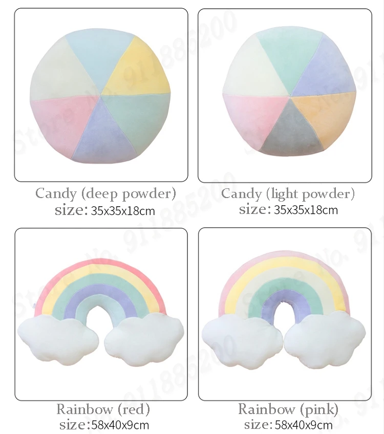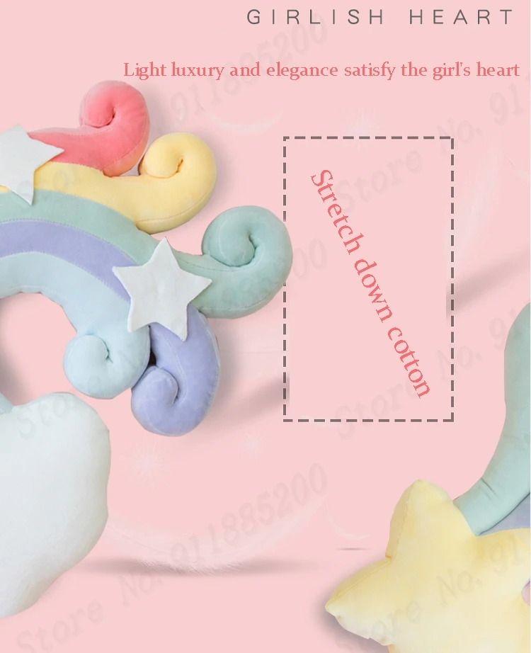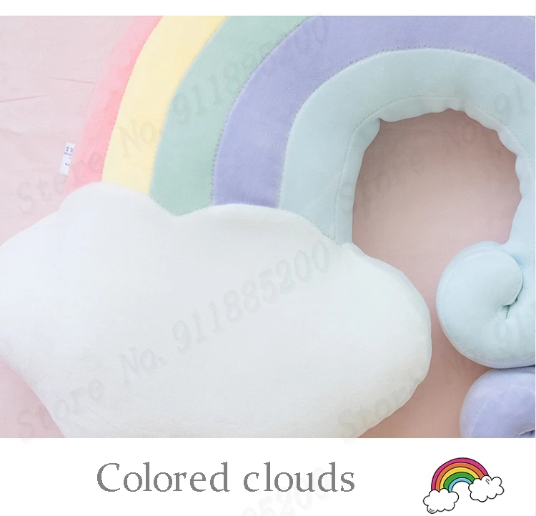 Плюшевые подушки в виде неба, яркие цвета, радуга, облако, звезда, ...