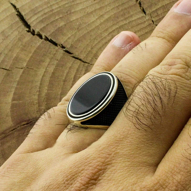 Модное мужское кольцо из натурального черного оникса серебряного цв...