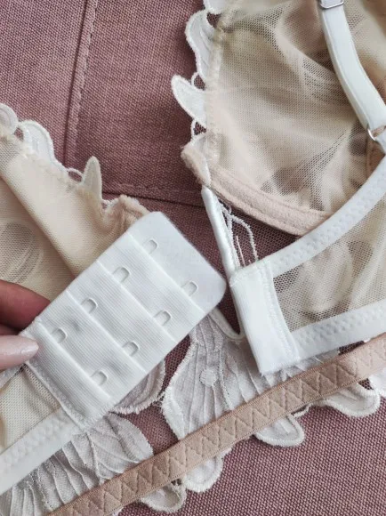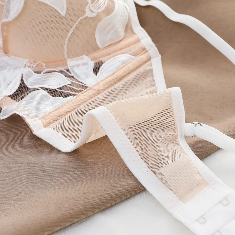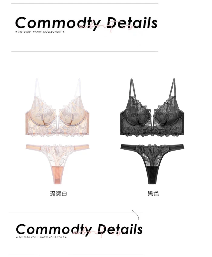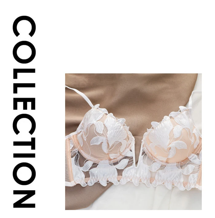 Комплект женского ультратонкого кружевного нижнего белья с чашками пуш-ап и глубоким V-образным вырезом