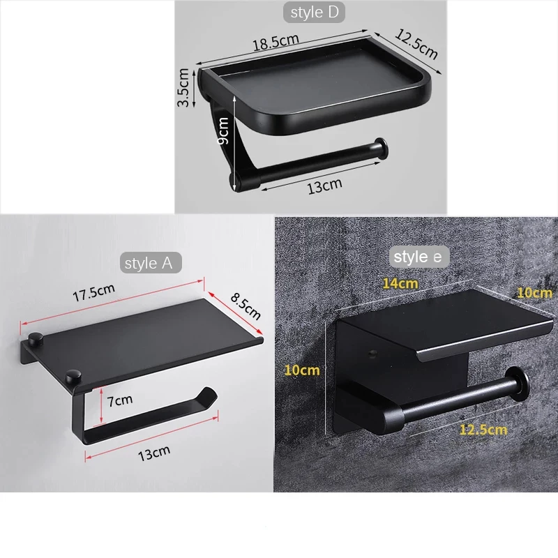 Характеристика: 1. Это держатель туалетной бумаги, стиль 1 \ стиль 2 \ стиль 3 с рулоном, вы можете положить на него мобильный телефон, растение в горшке. 2. Есть 3 стиля на выбор. 3. Установка этих 4 бумажных держателей для полотенец требует отверстий в стене, а винты уже включены в посылка.