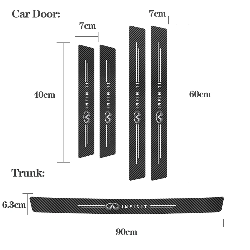 Если вам нужны другие автомобильные логотипы или у вас есть какие-либо вопросы, пожалуйста, свяжитесь со службой поддержки клиентов. Ссылка на изображение может быть предоставлена здесь Характеристика: -Материал: кожа из углеродного волокна -Посылка: 4 шт. наклейки на дверь автомобиля -Размер: 40x7 см, 60x7 см, 90x6,3 см -Подходит для: автомобильной двери, багажника Установка: Оторвите клей и вставьте непосредственно для завершения установки
