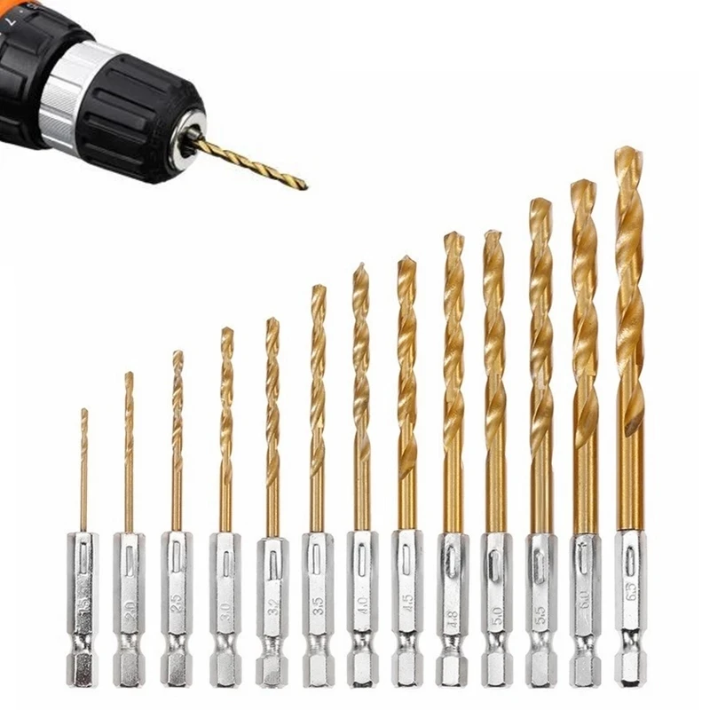 Новинка, набор сверл с шестигранным хвостовиком из быстрорежущей стали с титановым покрытием, 13 шт., набор сверл с шестигранной ручкой, спиральные сверла 6,5, высокоскоростные стальные инструменты-мм