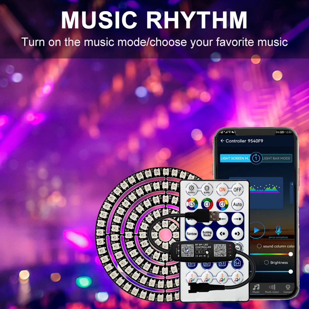 Светодиодное кольцо WS2812B 5050 RGBIC BuiIt-in 816243545 индивидуально адресуемое модульное устройство PixeI с 28-клавишным Bluetooth музыкальным контроллером
