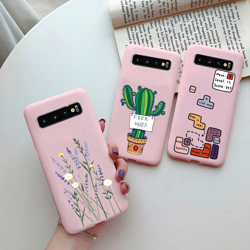 Милый мультяшный чехол с кошкой КАКТУСОМ для Samsung Galaxy S10 S10e 4G, карамельный Мягкий силиконовый чехол из ТПУ для Samsung Galaxy S10 Plus, задняя крышка