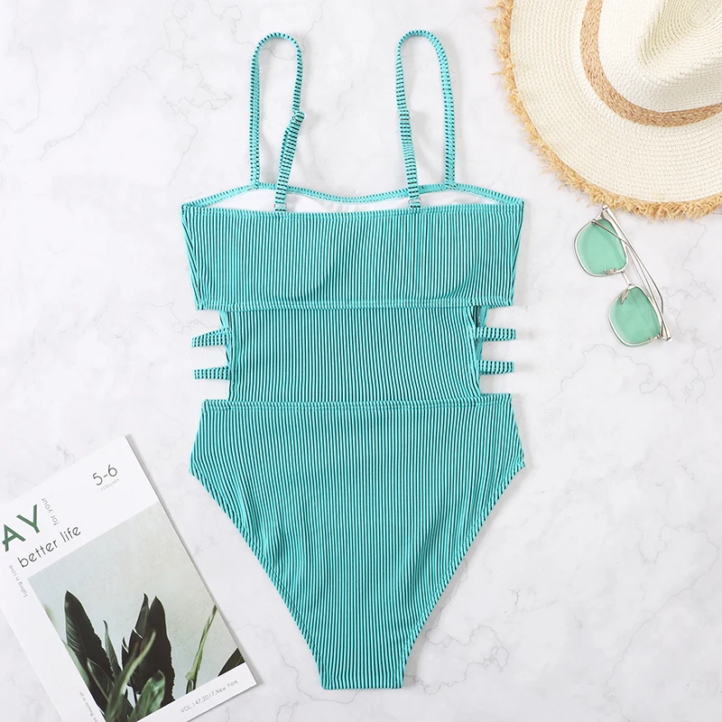 Купальник в рубчик Miyouj, зеленые цельные костюмы, сексуальный боди, купальник на шнурках, Женская Высококачественная пляжная одежда, летний купальный костюм
