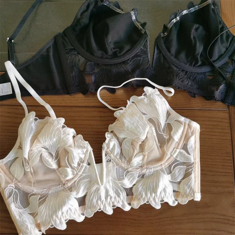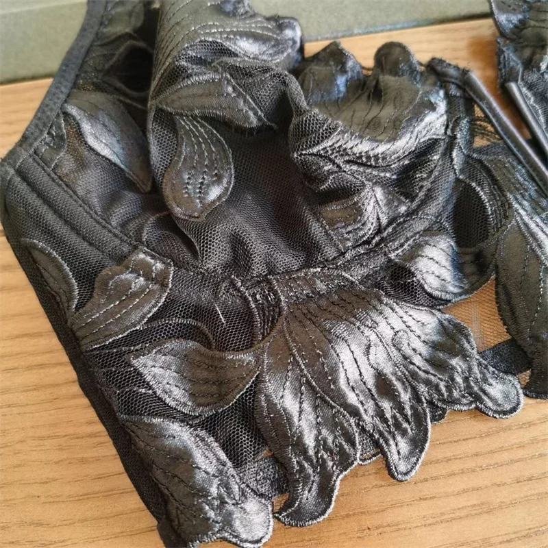 Комплект женского нижнего белья, с трехмерной вышивкой и сеткой, ул...
