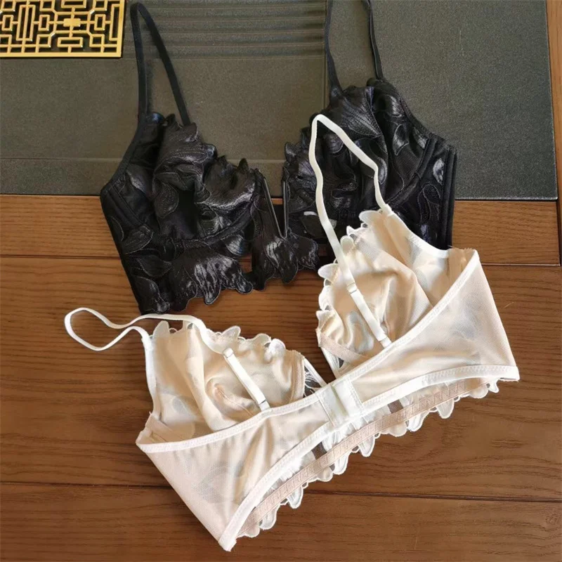Новый французский кружевной комплект нижнего белья с цветочной вышивкой, привлекательный ультратонкий бюстгальтер пуш-ап, женские хлопковые комплекты с глубоким V-образным вырезом, бюстгальтер и стринги