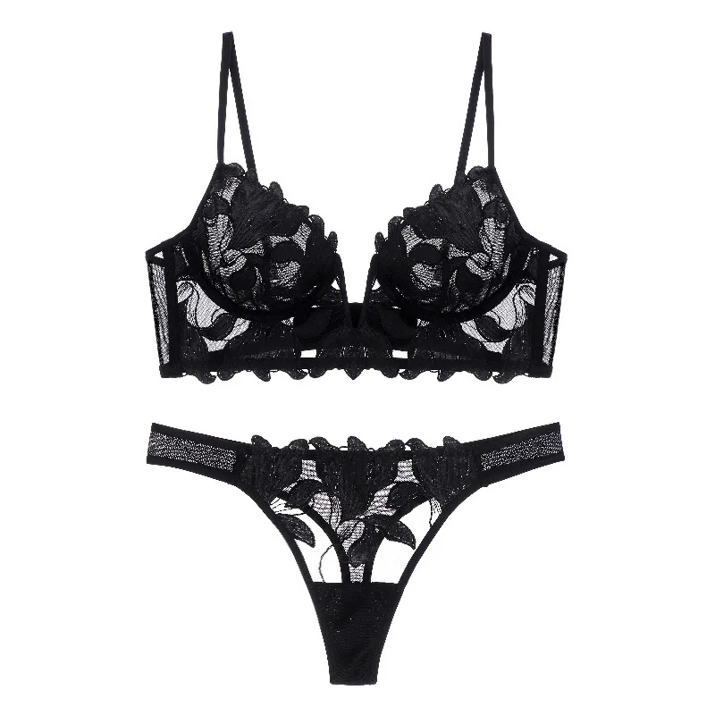 Кружевное нижнее белье с глубоким V-образным вырезом и вышивкой