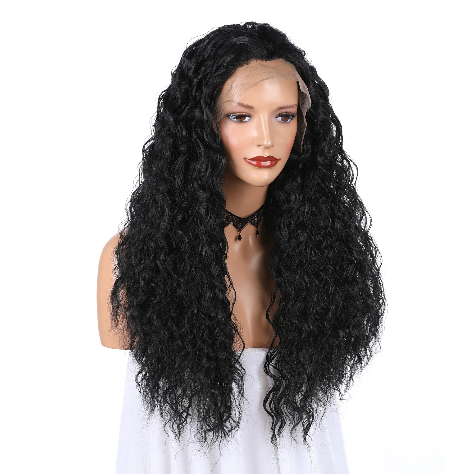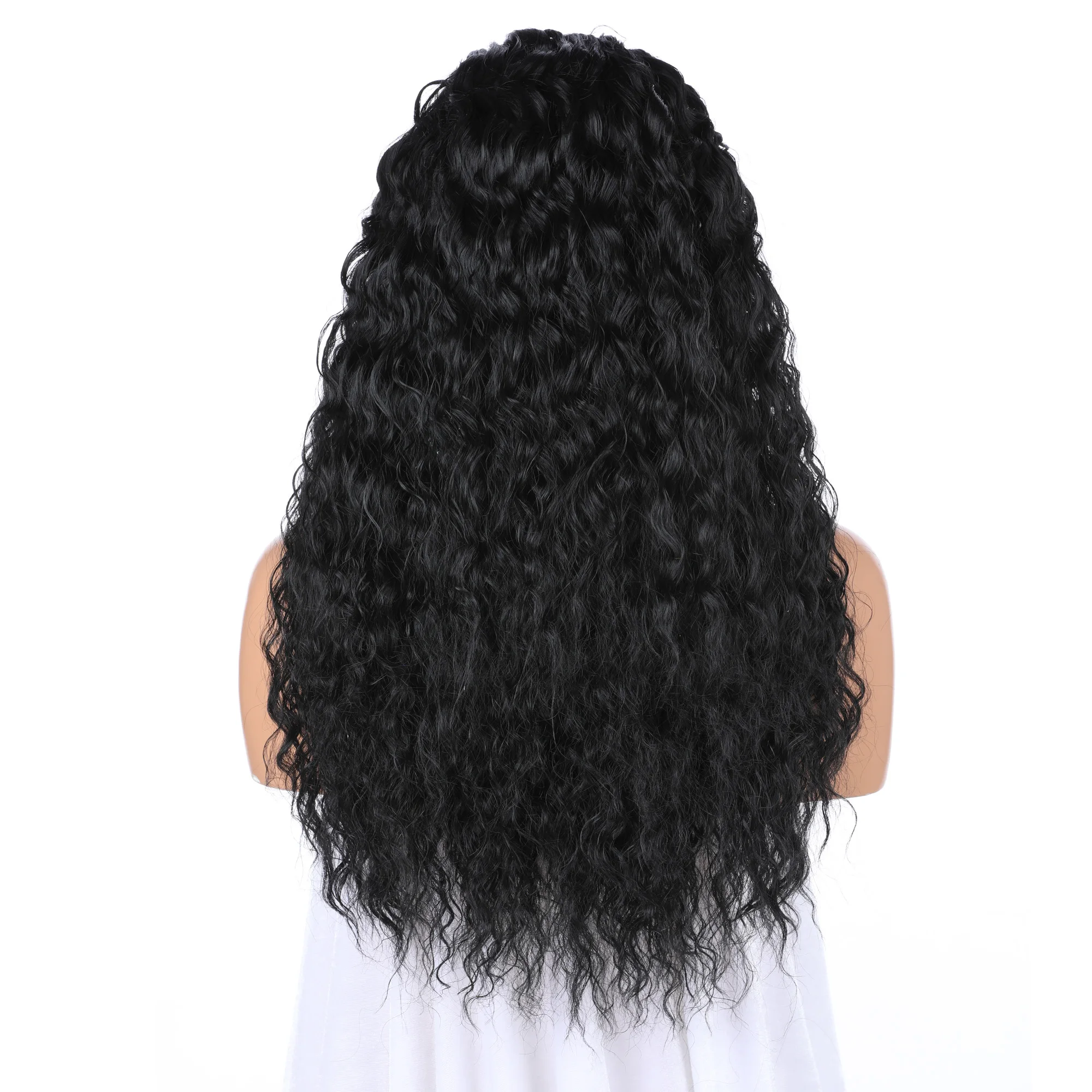 Черный цвет мягкие кудрявые длинные бесклеевые кружевные передние парики Высокая температура для черных женщин с детскими волосами 180% Плотность 26 дюймов