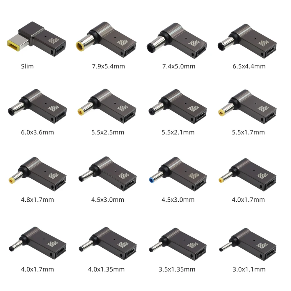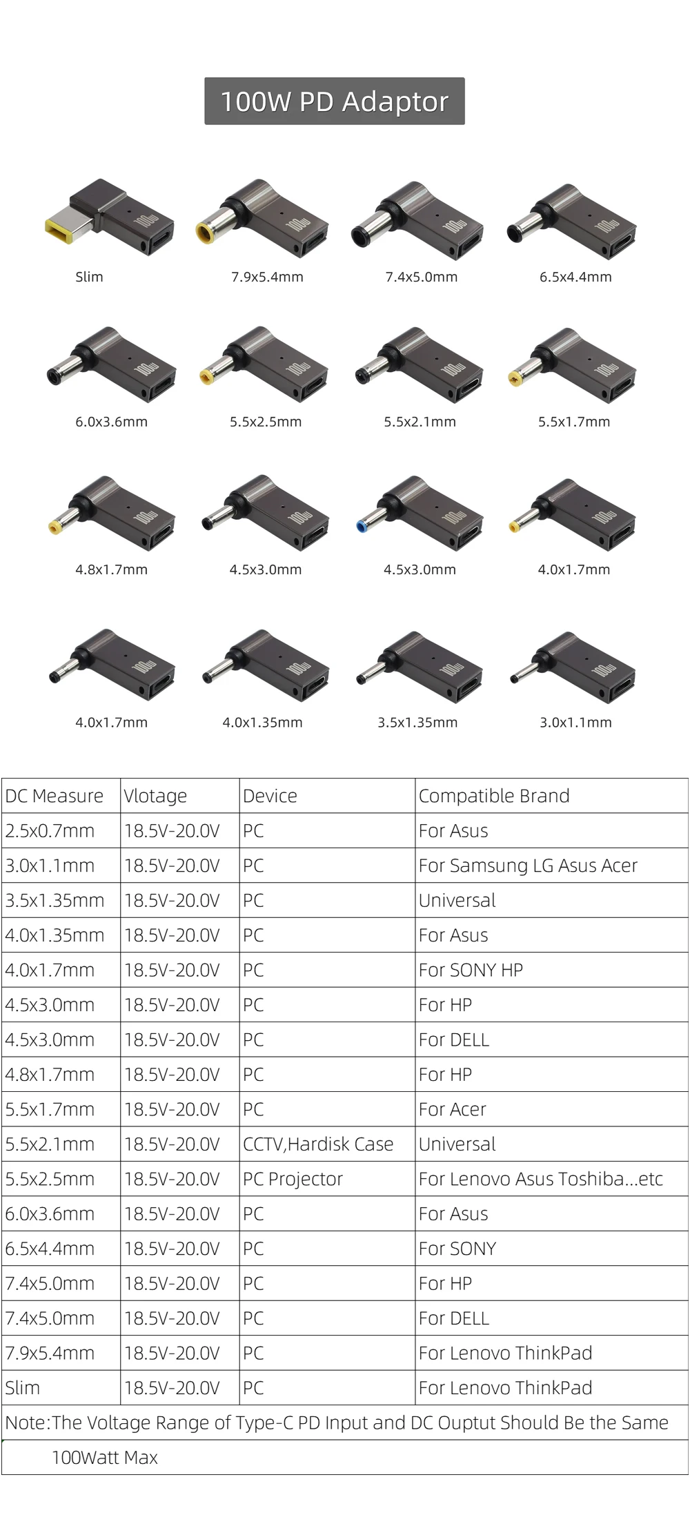 100W USB-C Быстрая зарядка PD Подключите кабель переменного тока Адаптер для Тип-C Female до 4,5*3,0/5,5*2,1/5,5*2,5/7,4*5,0/4,0*1,7 мм штекер Джек конвертер
