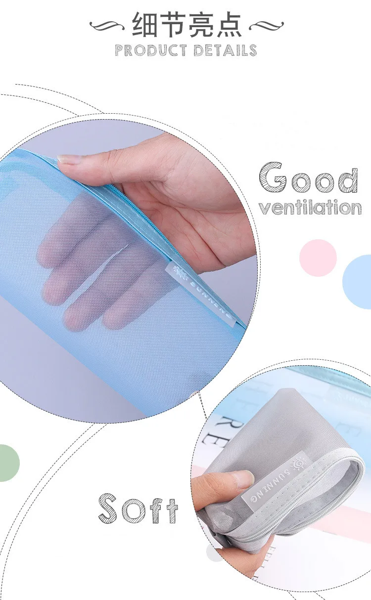 Однотонный прозрачный сетчатый чехол для карандашей на молнии сумка...