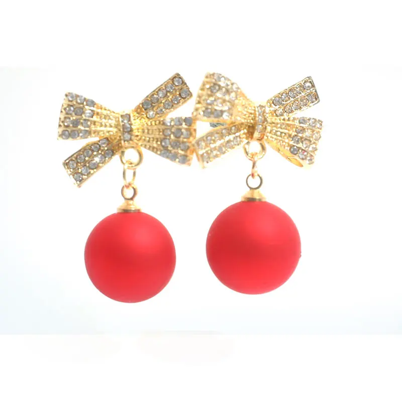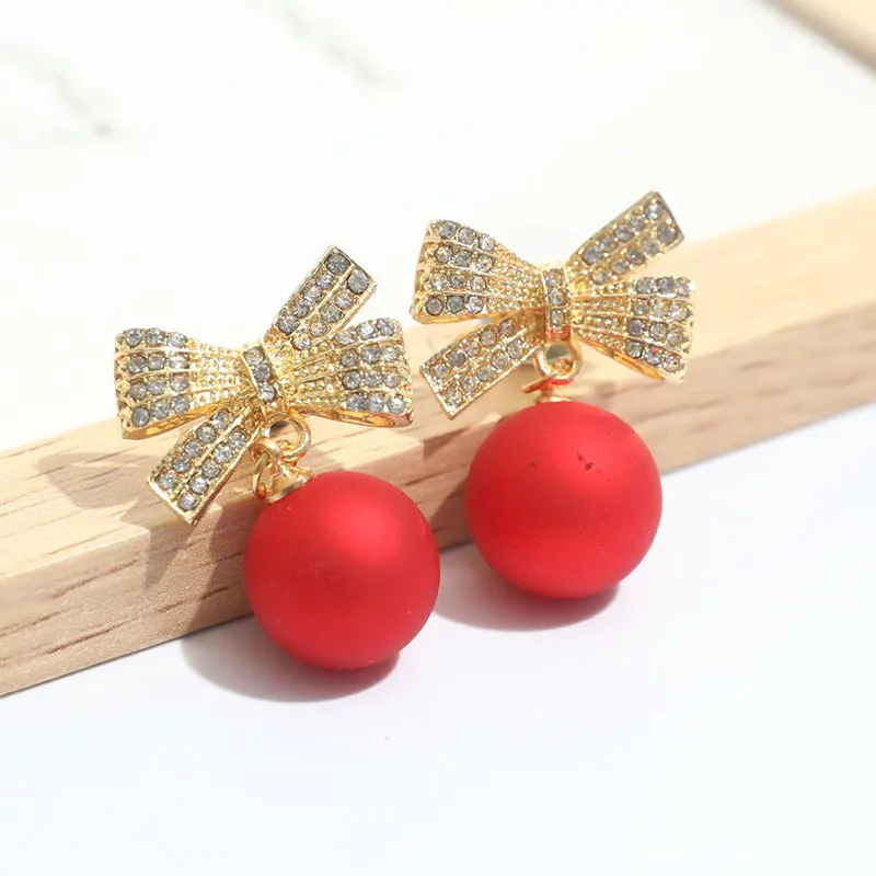 Серьги-шарики женские рождественские, красного цвета, с бантом и сн...