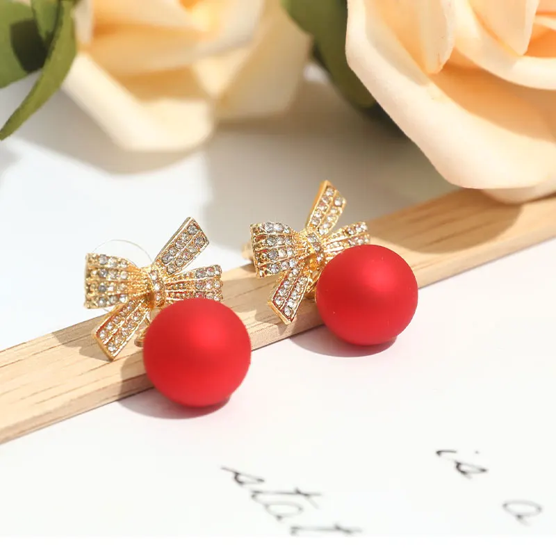 Модные хрустальные серьги-гвоздики с бантом для женщин жемчужные вишневые Цветы Стразы Красная серьга для девочек Рождественские украшения подарки