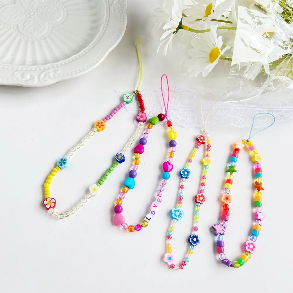 Ins Красочные акриловые бусины телефонных цепочек цветком с украшен...