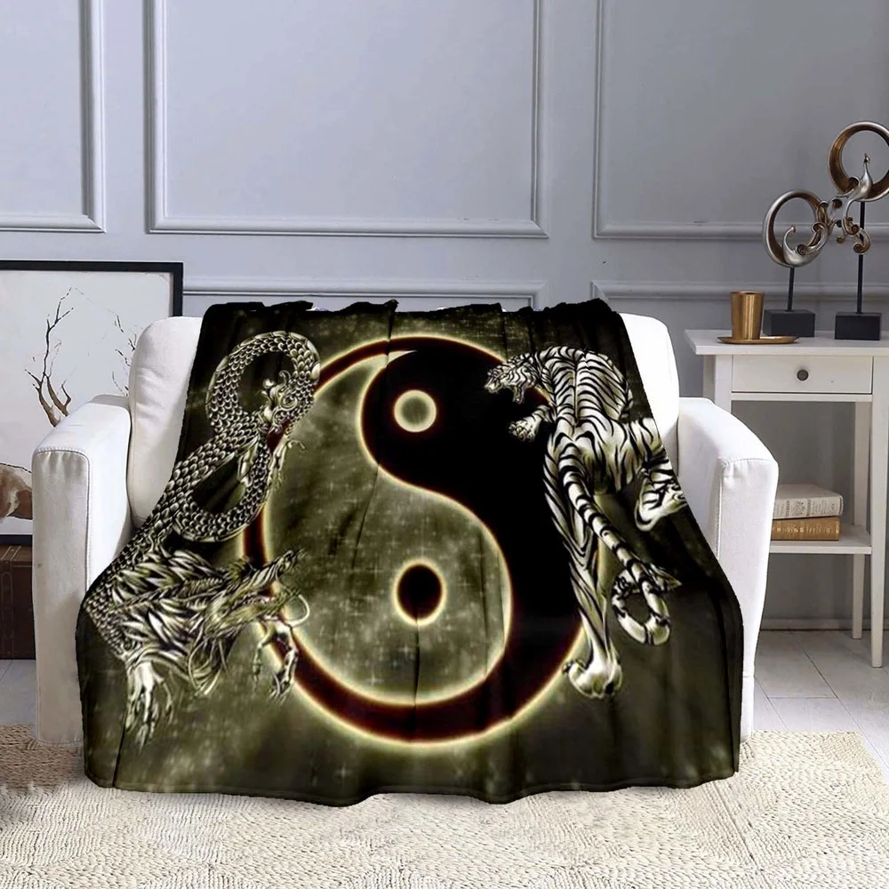Мягкое фланелевое одеяло с изображением дракона и тигра, всесезонное светильник кое теплое одеяло для гостинойспальни