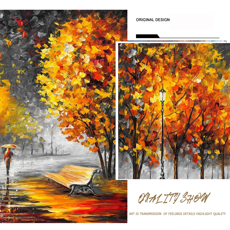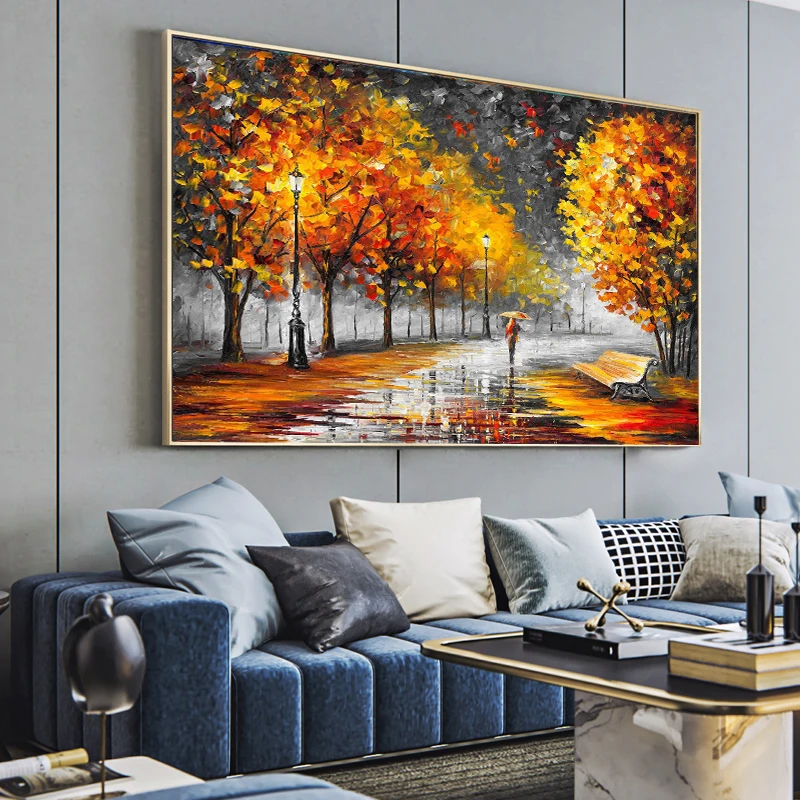 Большой светильник для влюбленных, дождя, улицы, нож, пейзаж, масляная живопись на холсте, настенное искусство для гостиной, домашний декор, картина