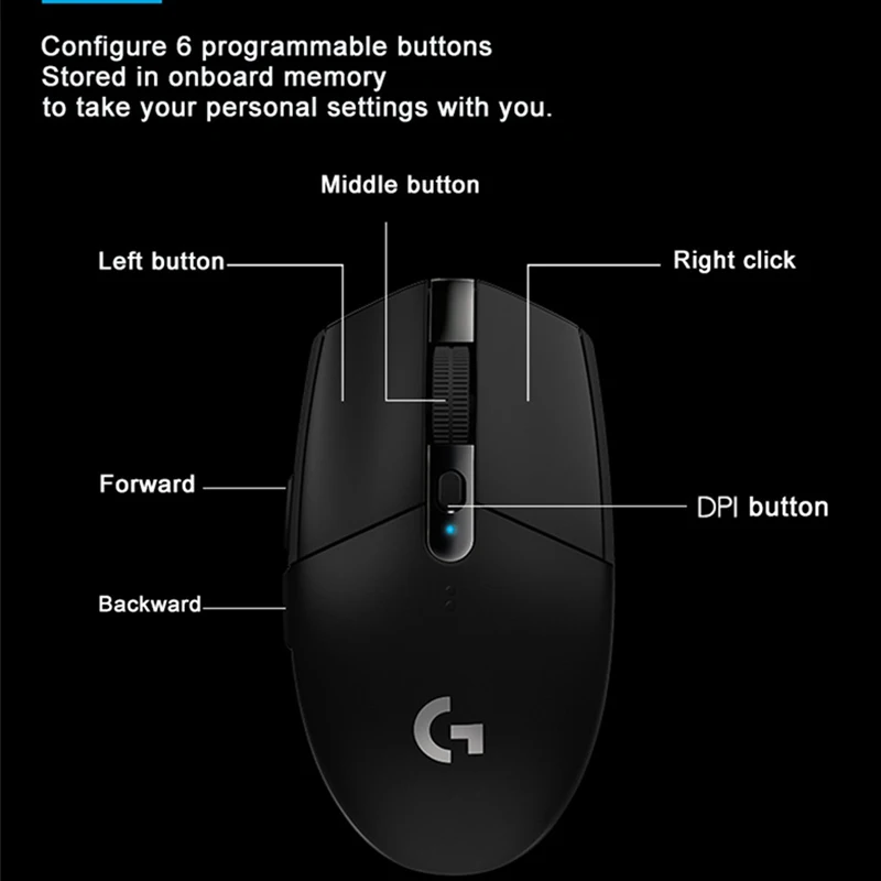Гибкий et pratiqueLes microcommutateurs des deux clés principales du Logitech g304 Pevent résister à environ 10 millions de clics. Il est également livré avec un bouton du milieu, un bouton DPI et deux boutons latéraux qui Pevent être personnalisés à l'aide du logiciel de jeu Logitech.