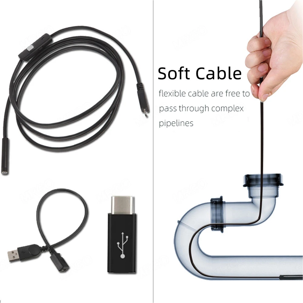 Водонепроницаемая камера IP67Длинная длина кабеля, 4 различных длины кабелей, доступных для вас на выбор1200P HD камера, прозрачная и простая в установке и использовании.С 8 регулируемых белых светодиодный свет, яркий достаточно для использования в темных пятенС тремя видами usb-порта: Micro USB, Type-C и USB.