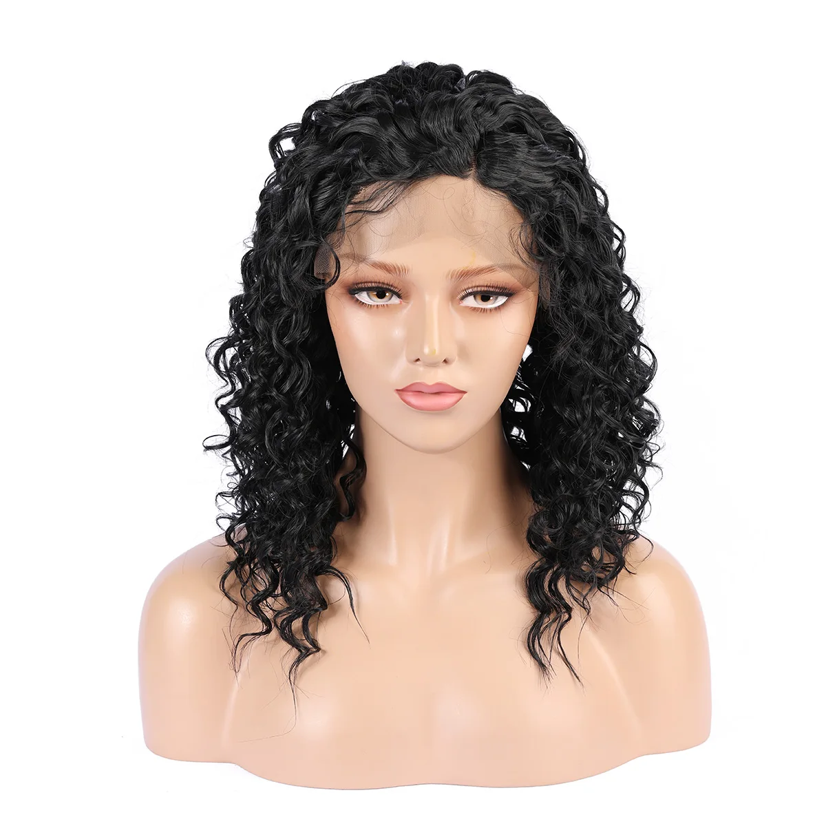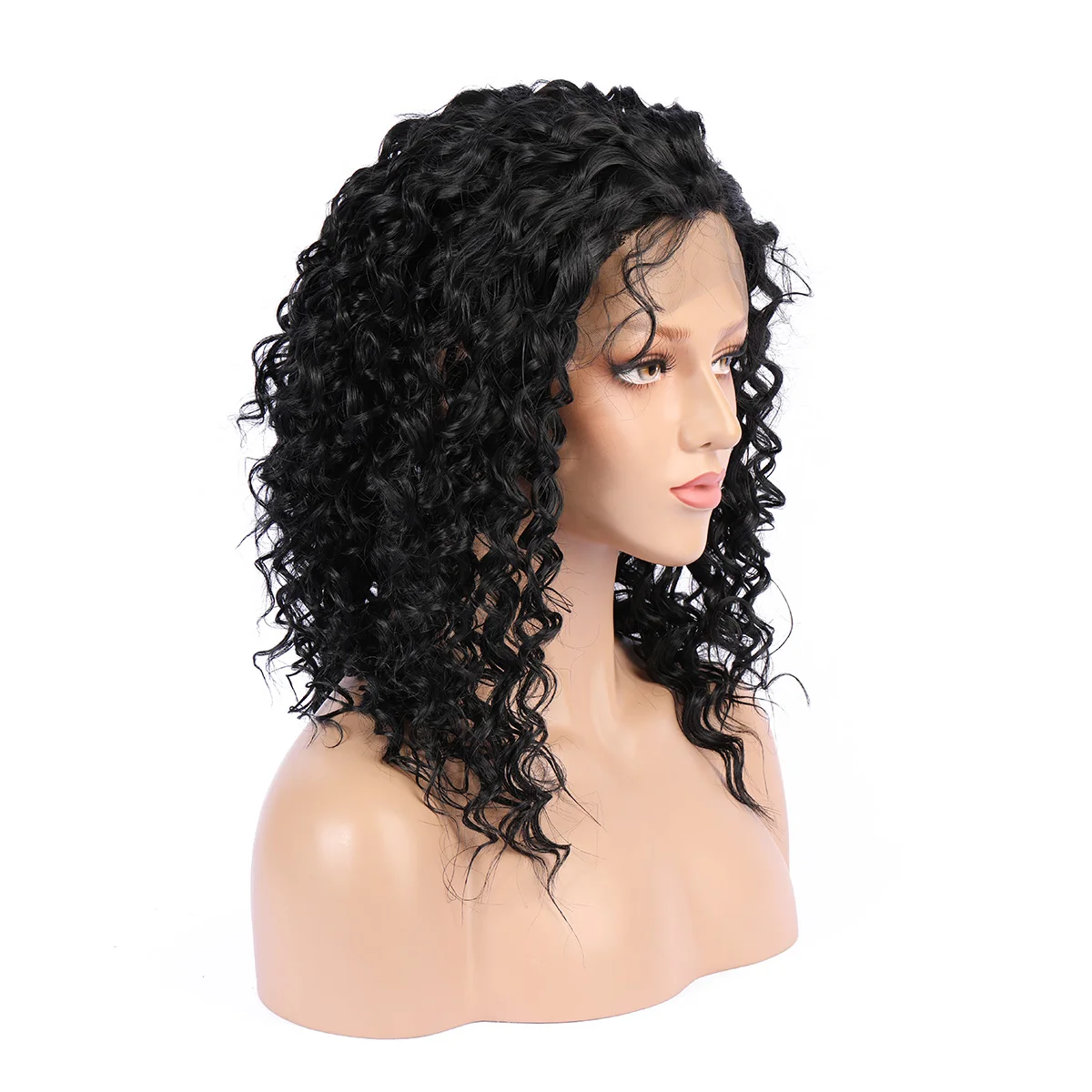 Черный цвет мягкие кудрявые длинные бесклеевые кружевные передние парики Высокая температура для черных женщин с детскими волосами 180% Плотность 26 дюймов