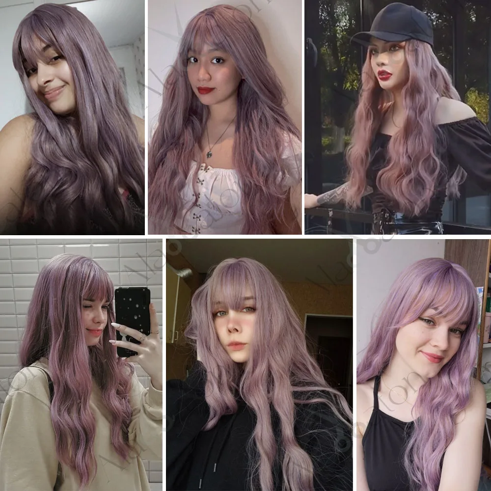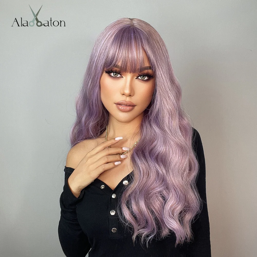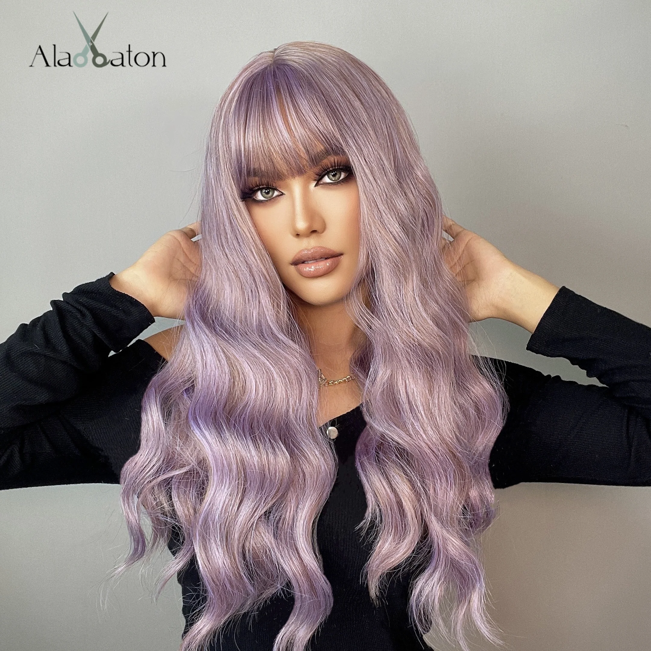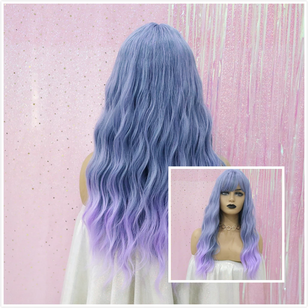ALAN EATON, длинные волнистые синтетические парики с челкой, цветные фиолетовые парики для женщин, Лолита, косплей, вечерние, повседневные, термостойкие волокна