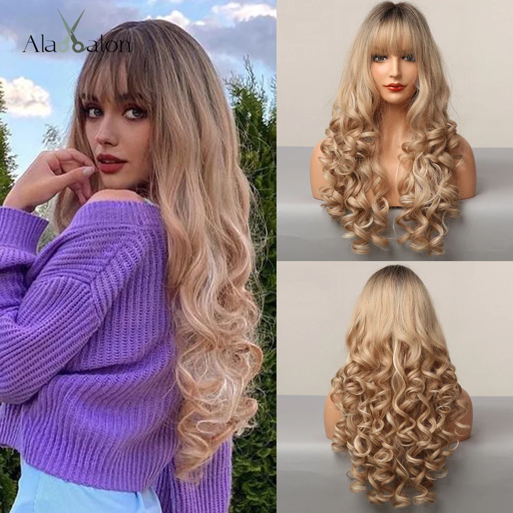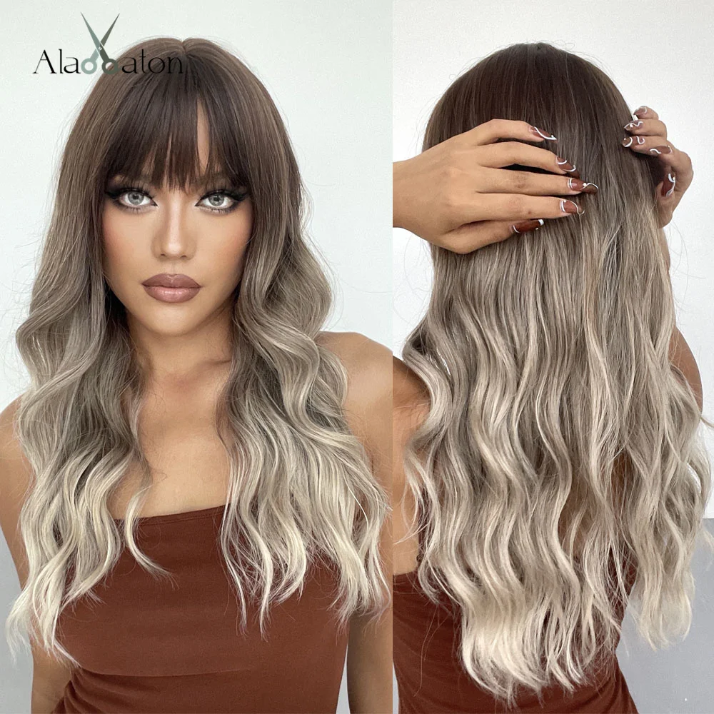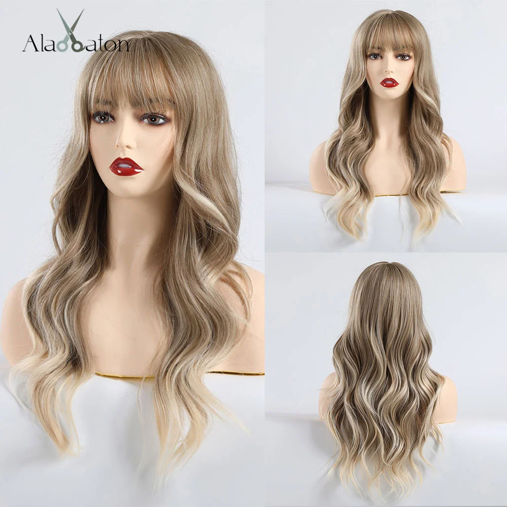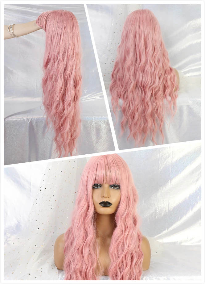 ALAN EATON, длинные волнистые синтетические парики с челкой, цветные фиолетовые парики для женщин, Лолита, косплей, вечерние, повседневные, термостойкие волокна