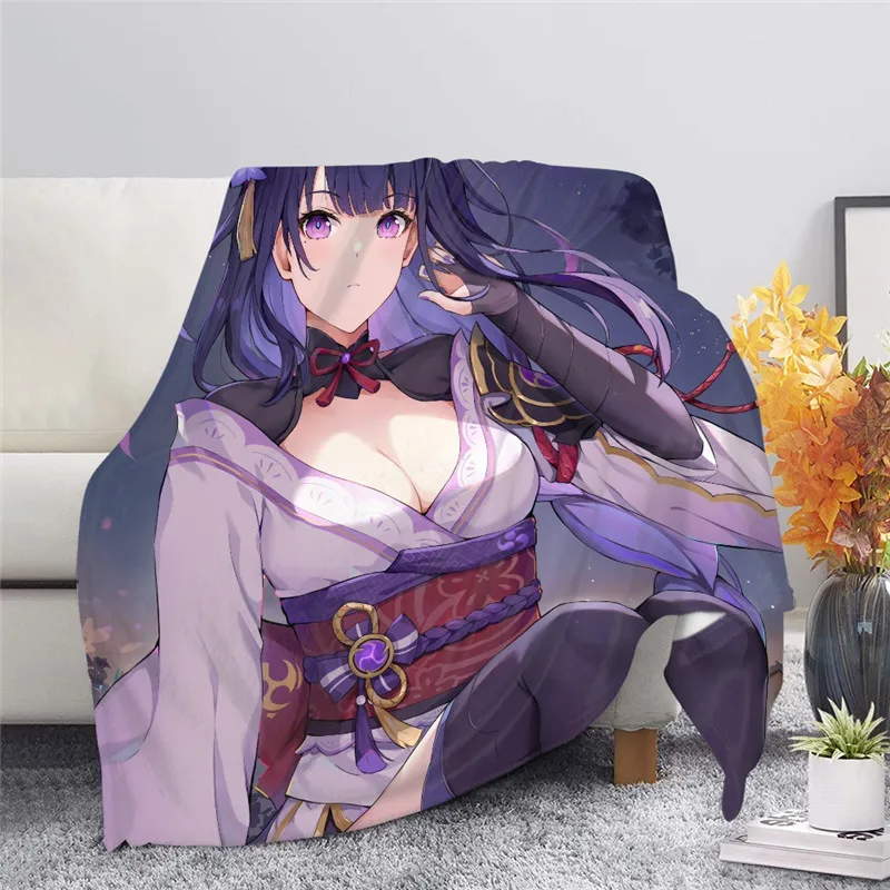 Новинка 2021, фланелевое одеяло для кровати плед геншин Raiden Shogun, зимнее удобное плюшевое покрывало