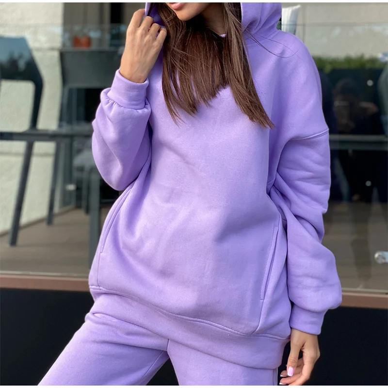 Комплект из двух предметов, повседневный флисовый спортивный костюм для женщин, Осень-зима 2021, женские комплекты, толстовка с капюшоном и длинным рукавом, спортивный костюм