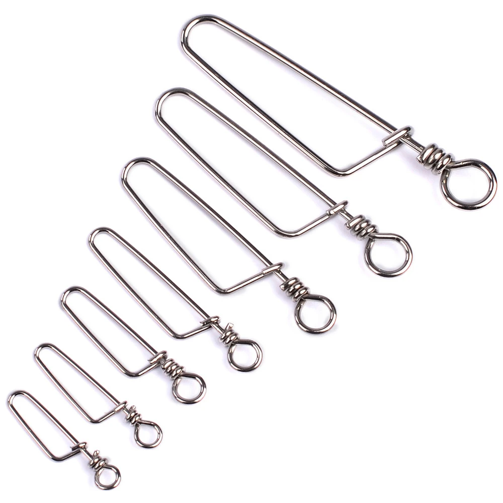 Рыболовные Вертлюги Из Нержавеющей Стали 100 шт.лот, блокирующие вращающиеся Вертлюги с крючком-защелкой, соединительные аксессуары для рыболовных крючков