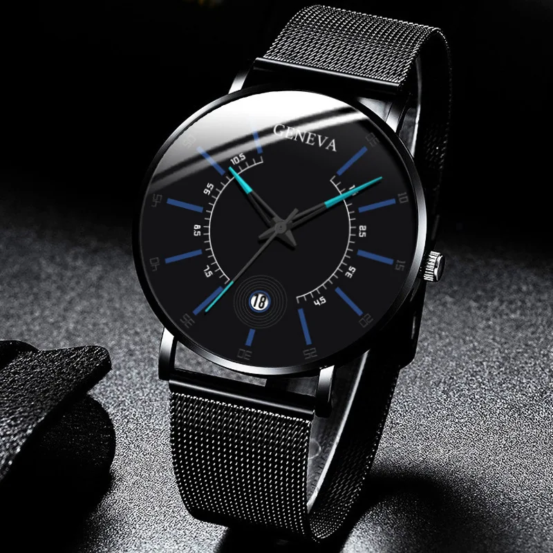 2020 Geneva, мужские наручные часы деловые часы, черные кварцевые ч...
