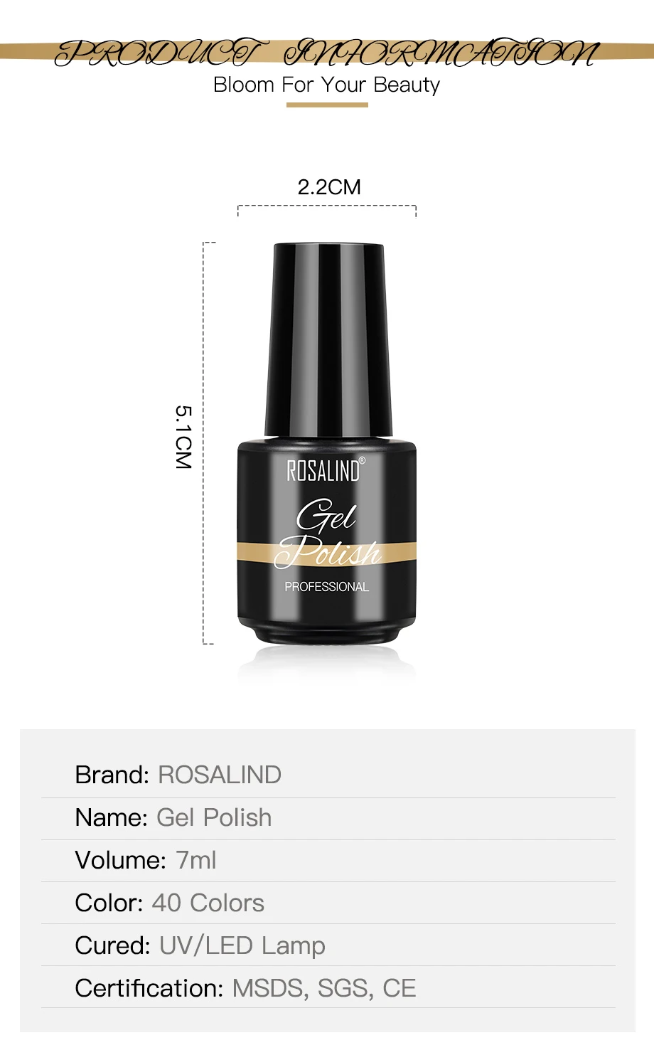 Гель-лак для ногтей ROSALIND, базовое и верхнее покрытие, 7 мл, Гель-лак для УФ светодиодный Ной лампы, разноцветный Полупостоянный Гель-лак для ногтей, удаляемый замачиванием