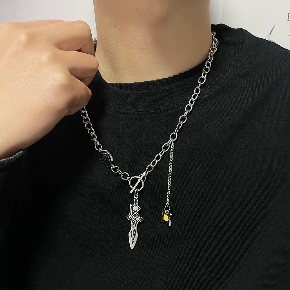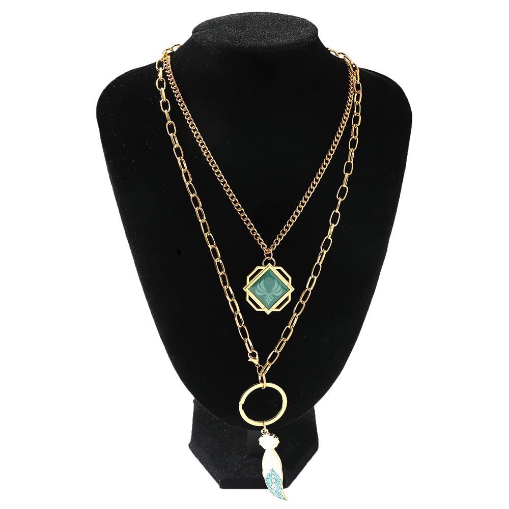 Игра Genshin ударное двойное ожерелье элемент ветра Божьи глаза перо Венти светящаяся подвеска Хип-хоп цепочка Косплей ювелирное изделие подарок