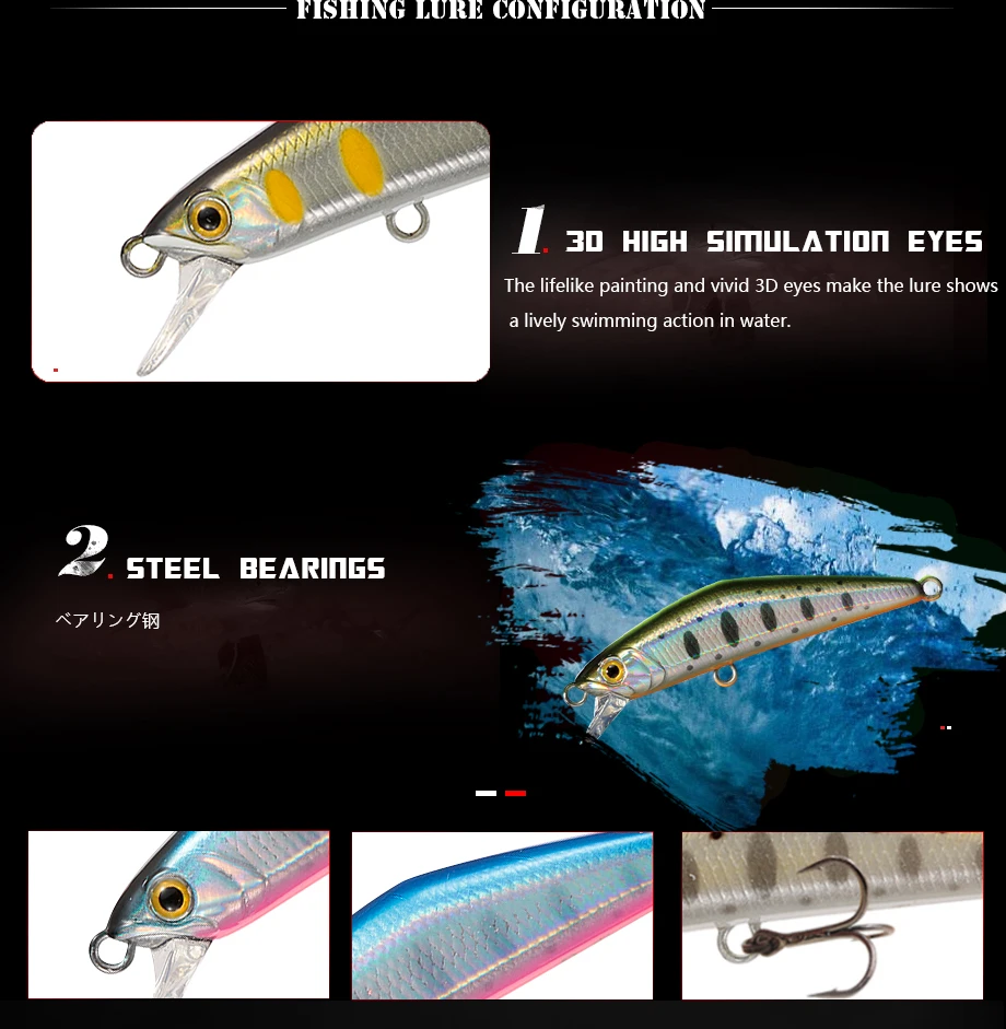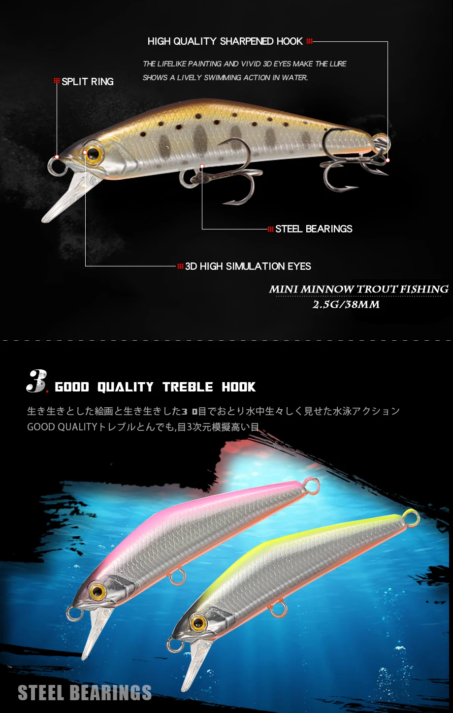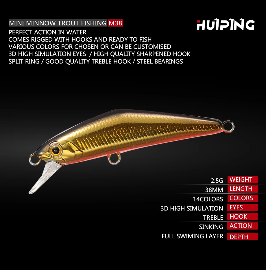 Тонущая миниатюрная приманка в виде гольяна, 38 мм, 1,5 г, 15 цветов, жесткая пластиковая плавающая приманка с объемными глазами, блесна, приманка для рыбной ловли, M38