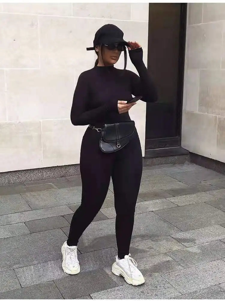 Черный комбинезон с длинным рукавом, женский наряд, модная спортивн...