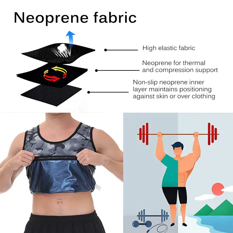 Новейший полимерный материал: улучшенный мужской жилет для сауны, высококачественная эластичная ткань высокого качества, эластичная ткань, не легко рвать, не трения, ваша кожа легко моется, мягкая и удобная, близко к телу, чтобы быстро повысить температуру, Может создать своего рода аналогичный тепловой опыт сауны, температура вашего тела будет расти, поэтому вы будете потеть больше, что поможет вам потерять лишний жир и построить сильные мышцы.