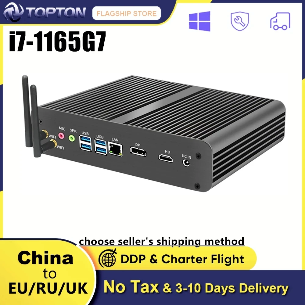 Мини-ПК TOPTON 11 поколения без вентилятора, игровой ПК с процессором Intel Core i7 1165G7 10710U, микрокомпьютер для настольного ПК NUC 4K HTPC 2DDR4 M.2 PCIe SSD
