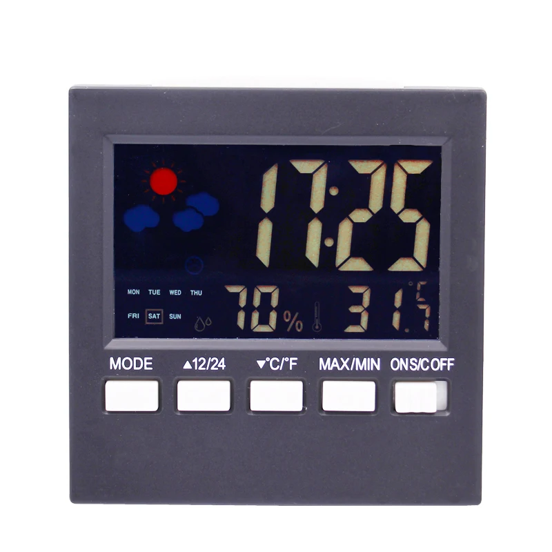 Многофункциональная метеостанция, цифровые комнатные часы с термометром, гигрометром, календарем, фазовым ярким будильником