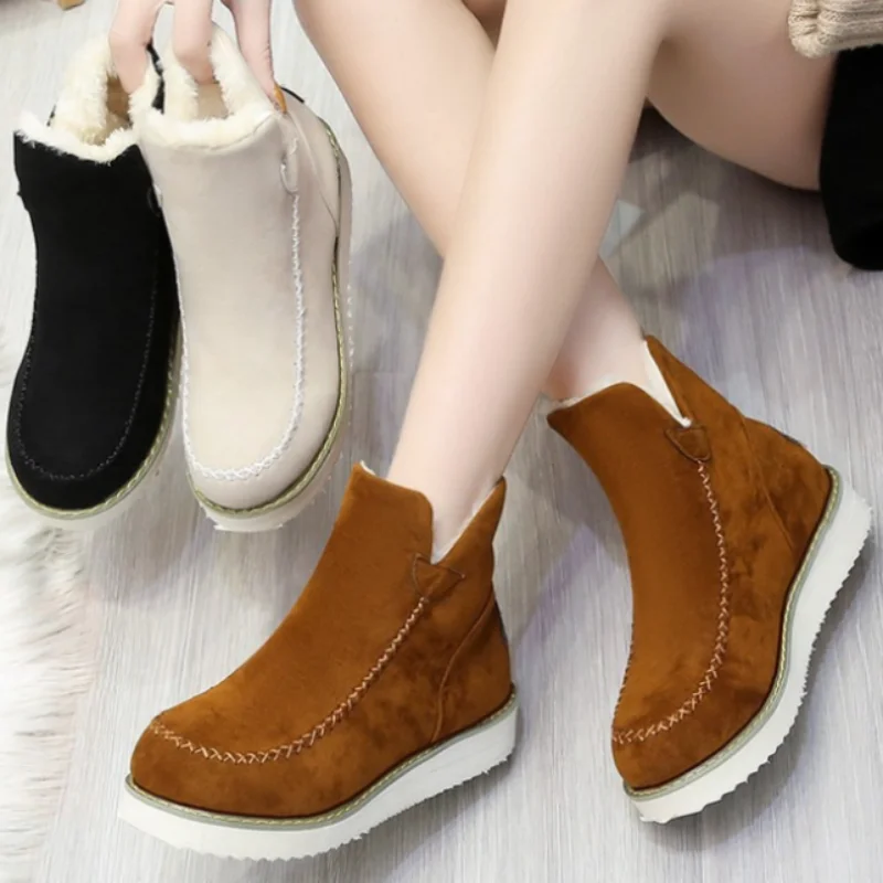 Женские короткие ботинки, зимняя теплая женская обувь на платформе,...