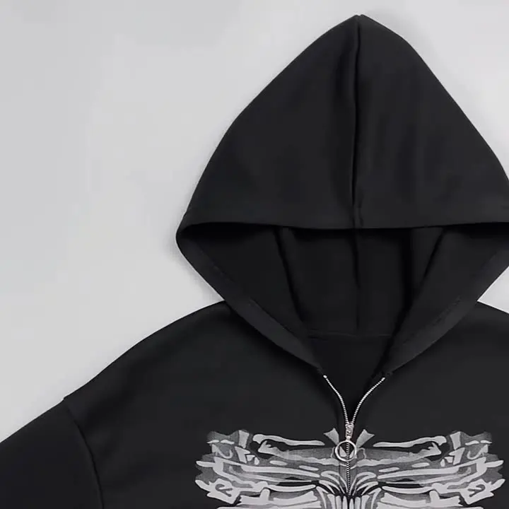 Готический гранж-панк с принтом бабочки, толстовки оверсайз на молнии, укороченный топ Y2k, уличная одежда с капюшоном и длинным рукавом, сексуальные черные осенние куртки