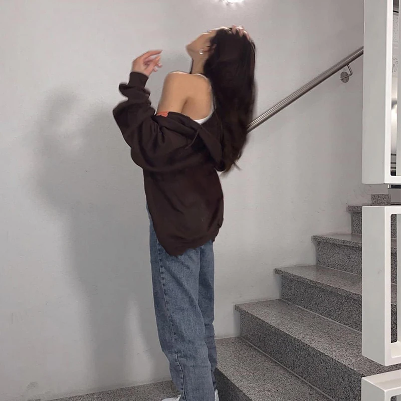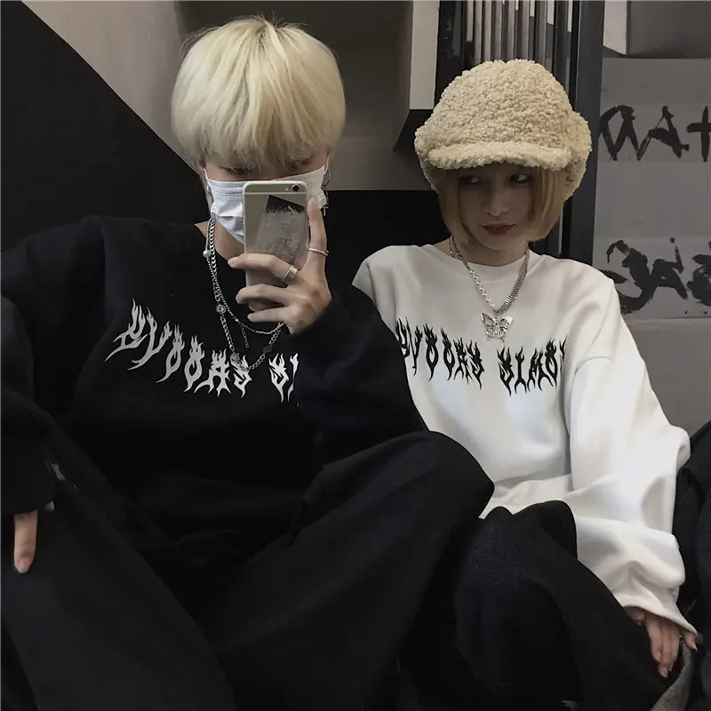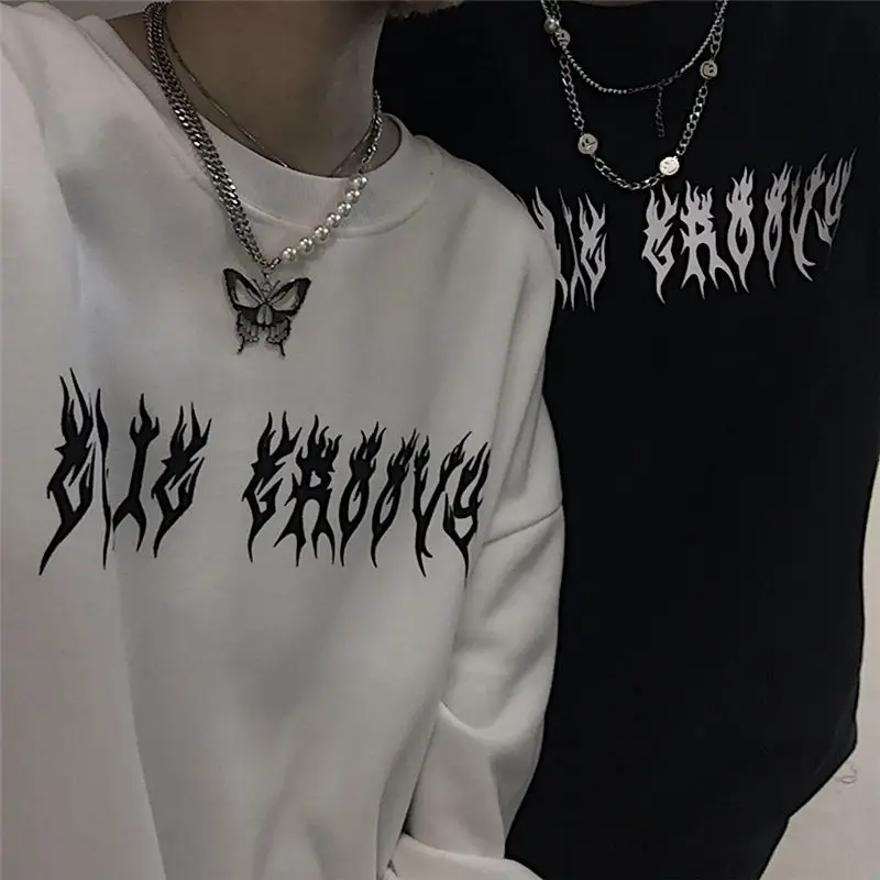 Y2K Толстовка большого размера, готическая одежда, свитшоты, женски...