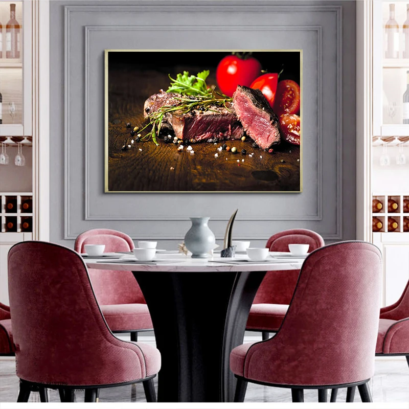Печатный постер в скандинавском стиле для стейка, фруктов, приправ, настенное искусство, Картина на холсте с изображением вкусной еды, Модульная картина для кухни, домашний декор