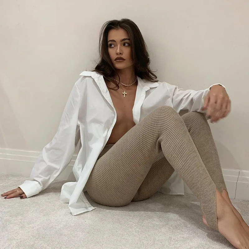 2021 трикотажные леггинсы женские повседневные эластичные брюки с в...