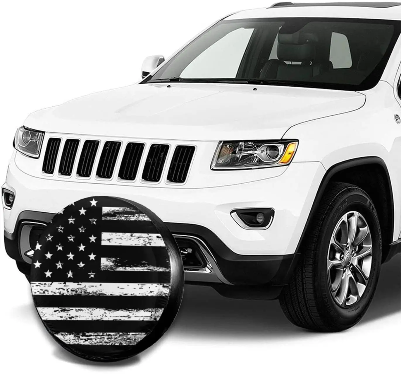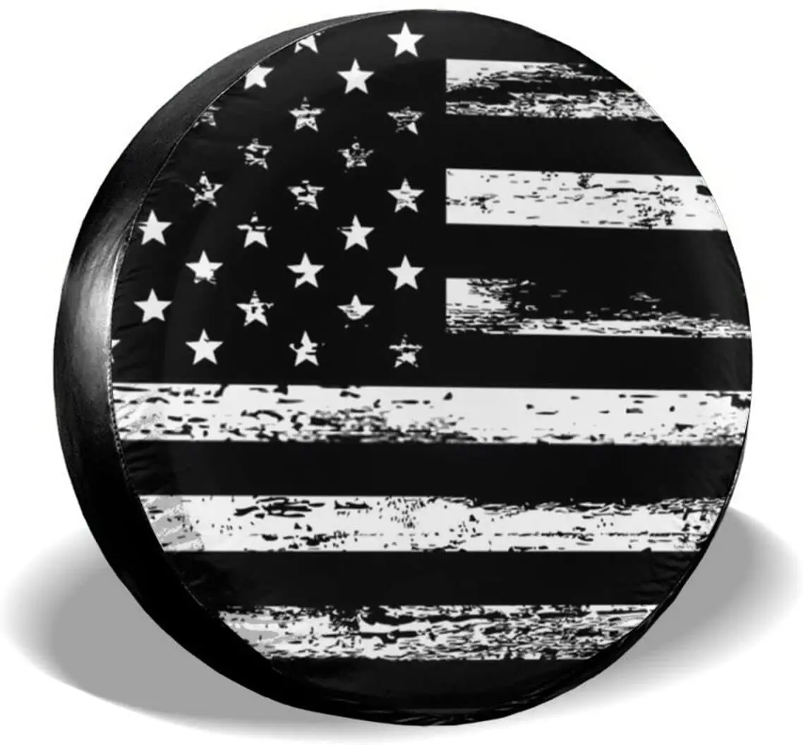 Крышка для запасных шин в стиле ретро, пылезащитный чехол черного и белого цвета с американским флагом для RV, трейлера, грузовика, внедорожника 14, 15, 16, 17 дюймов